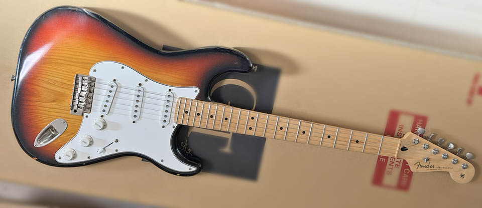 以前 Fender Japan ST-650SPL という、「日本版アメスタ」と通称されていたストラトを持っていたが、今回はホンモノのアメスタ。個人的には初の Fender USA 製品。Gibson Custom Shop 製品で「ホンモノのレスポール」を感じたので、Fender USA 製品を買えば「ホンモノのストラト」を感じられるのか!?と思い検証のためヤフオクで購入。