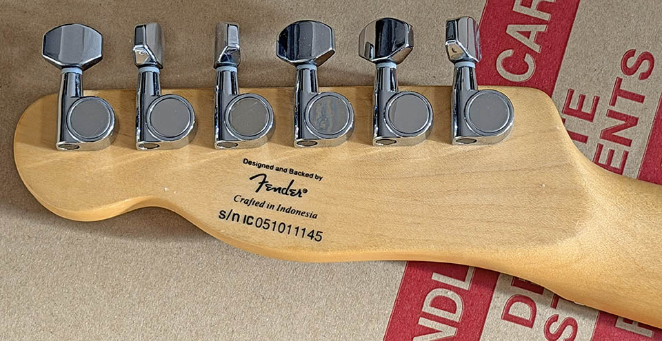 シリアルナンバーが「IC051011145」と「05」で始まっているので、インドネシア製の2005年生産品。電装系の動作は問題ないが、ハイフレットに音づまりがあるので、22F ネックにでも換装したいなと思っている。