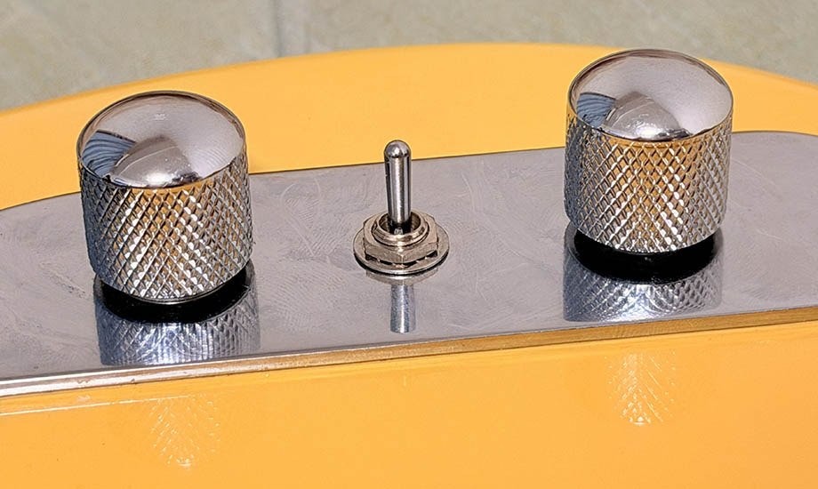 それから以下のパーツと、他に工具を揃え、金属プレートにミニスイッチ穴を開けて「1ボリューム・1トーン (Push Pull コイルタップ可能)・3 Way セレクター」構成にした。