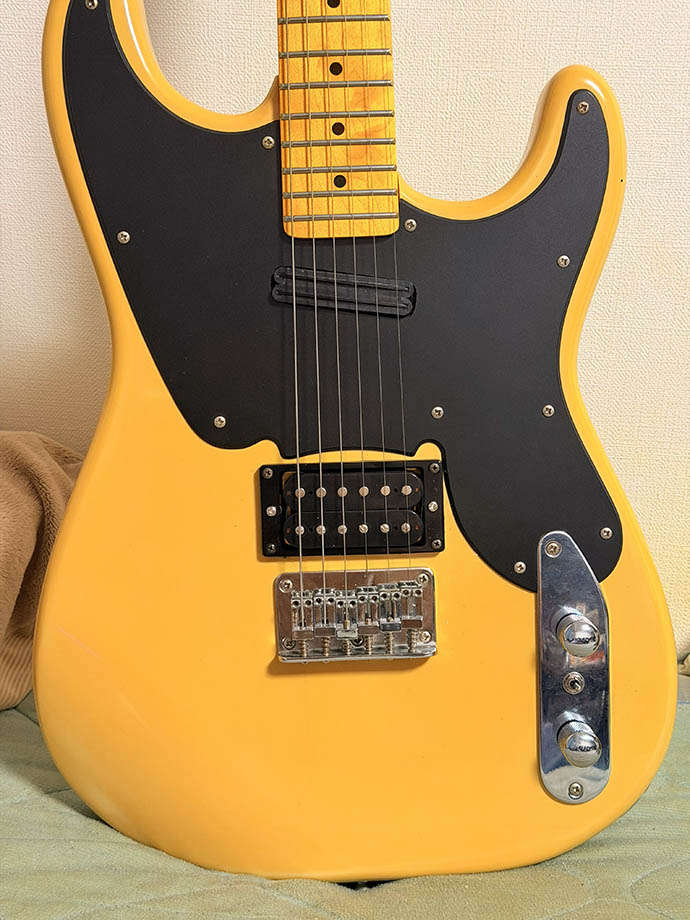 Gibson CS レスポールを購入して「コレで俺のギター・ジャーニーは終わった…」とか言いながら、その直後に5000円の中古安ギターをポチる謎神経だが、このギターも思いのほか良いサウンドだった。ミディアムスケールで使いやすい2ハム。シンクロナイズドトレモロで弦交換も容易。アームは規格が合うモノが見つかれば買うが、まぁ付けなくても良いかな、という気分。値段的にも、気兼ねなく掴んで弾く用のギターとして向いている。